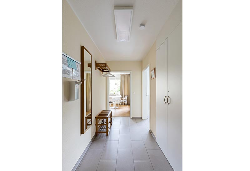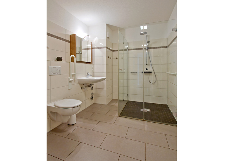 Die Wohnung ist barrierearm und auch mit Rollstuhl zugänglich. Außerdem verfügt die Wohnung über extrabreite und schwellenlose Türen sowie eine ebenerdige Dusche.