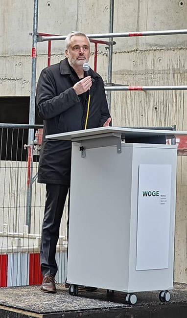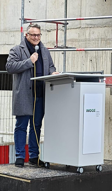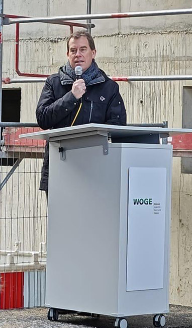 So ein Projekt hat seinen Preis: Nach der heutigen Grundsteinlegung und der für Sommer 2025 geplanten Gesamt-Fertigstellung werden über 18,0 Mio. € investiert sein. Davon freie Kapitalmarktmittel in Höhe von 10,0 Mio. € und Fördermittel in Höhe von rd. 4,4 Mio. €. Zur Kompensation der deutlichen Mehrkosten mussten weitere Darlehensmittel in Höhe von 2,0 Mio. € aufgenommen werden. Schließlich werden am Ende rd. 1,6 Mio. € aus Mitteln der Genossenschaft in das Projekt fließen.