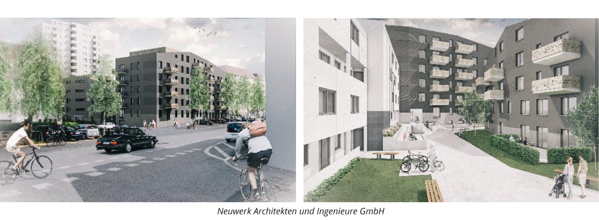 Zudem wird mit dem fernwärmeversorgten Neubauprojekt ein sehr guter energetischer Standard mit dem Effizienzhaus SH70 (Förderstandard) erreicht, den wir um extensive Gründächer ergänzen werden. Auf den Bestandsgebäuden 258 a und b wurden die Gründächer bereits fertiggestellt.