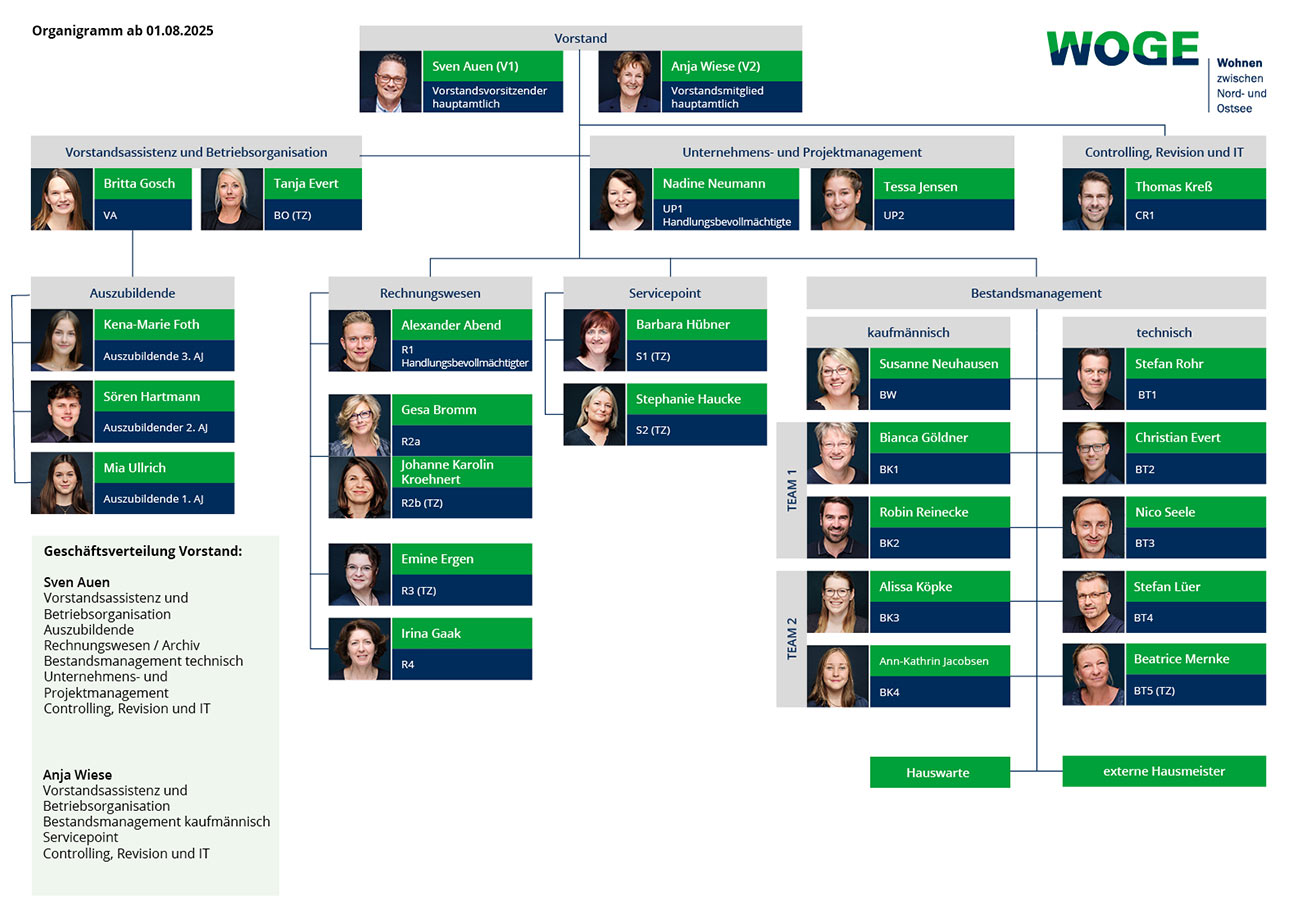 Gegründet im Jahr 1926 als Postbauverein Kiel eG entwickelt sich unser Unternehmen – seit 1996 unter seinem heutigen Namen WOGE Wohnungs-Genossenschaft Kiel eG – kontinuierlich weiter. Was mit wenigen Wohnungen begann, ist heute eine in Schleswig-Holstein regional tief verwurzelte Wohnungsgenossenschaft. Mittlerweile bewirtschaften wir rund 2.300 Wohnungen in 11 Städten und Gemeinden im nördlichsten Bundesland. Unsere Philosophie aber war, ist und bleibt immer gleich: Solidarität und Vertrauen, Transparenz und Gleichberechtigung – das sind Werte, die für Unternehmen wie die WOGE nicht aus der Mode kommen. Im Gegenteil! Denn der genossenschaftliche Wertekodex entspricht unserer Überzeugung. Unser Team setzt sich Tag für Tag aktiv dafür ein, unsere Genossenschaft zu stärken und das Unternehmen für die Zukunft stark zu machen.